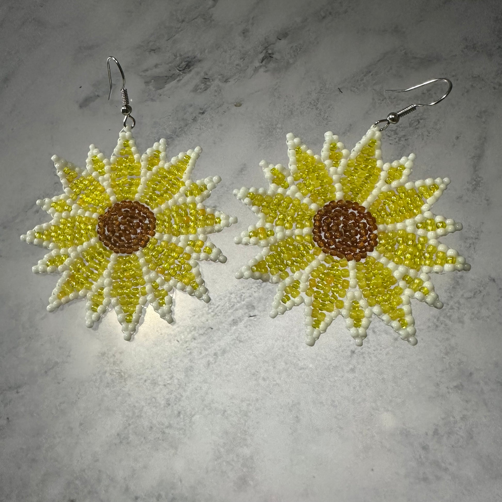 Detailed large beaded flower earrings