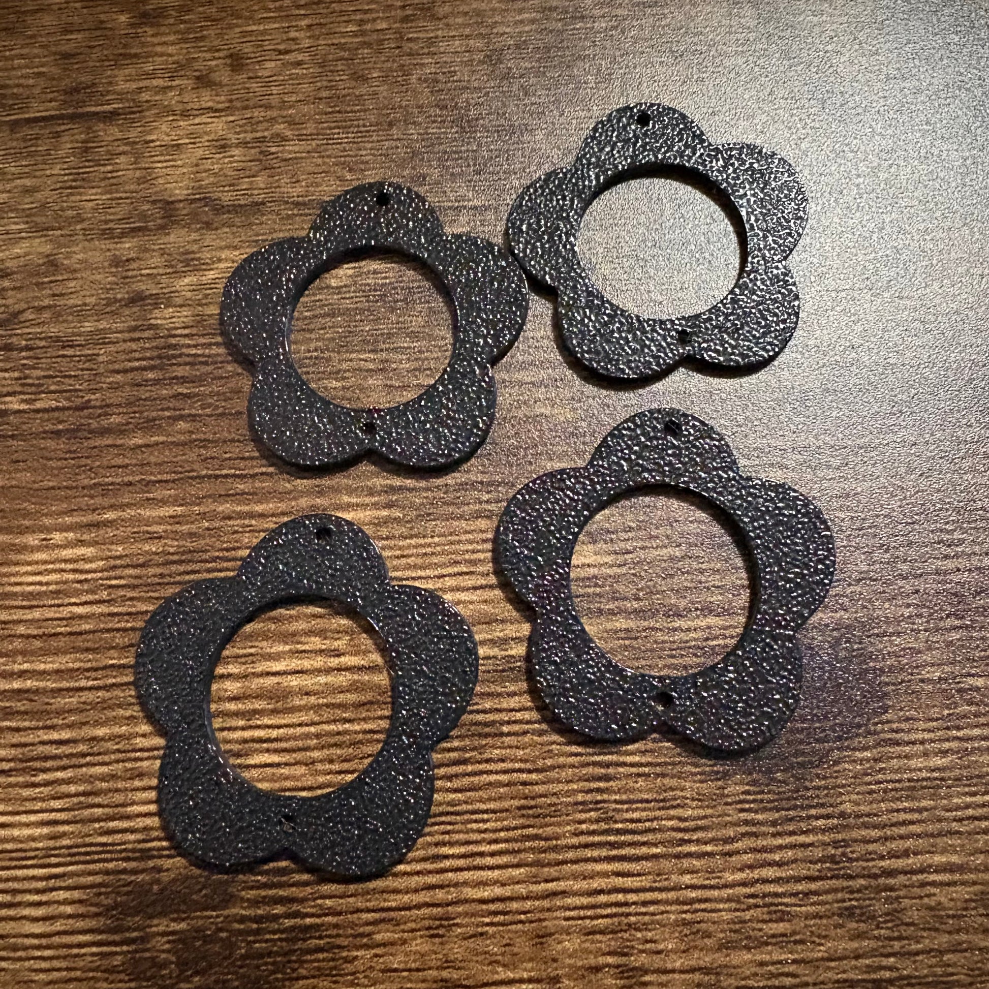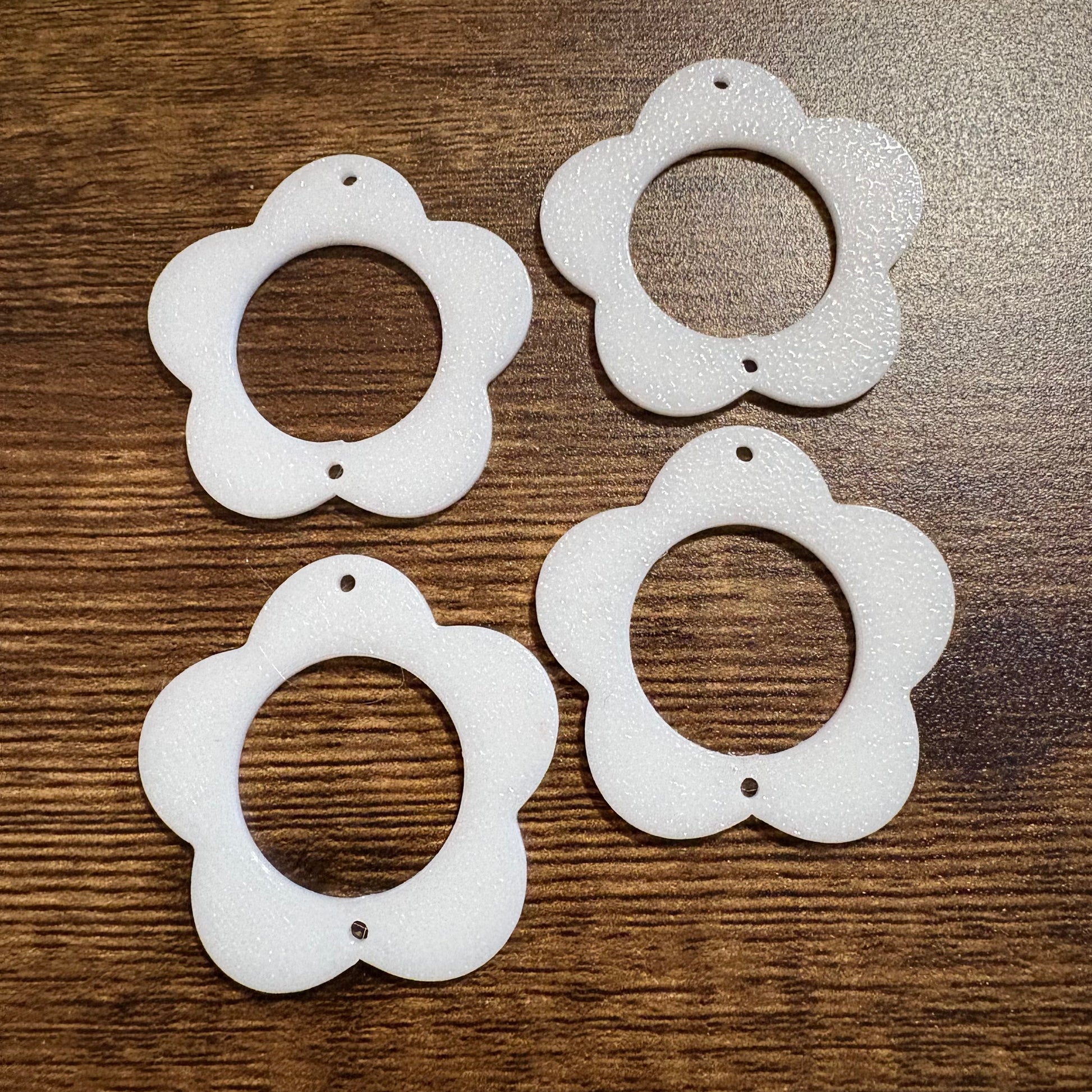 3D designed and printed by myself, these flowers have small holes on each end so they can be used as danglers or glue/stitch it down to use them as cabs instead. Made of a bioplastic they are lightweight and easy to glue down with superglue or most other popular adhesives.