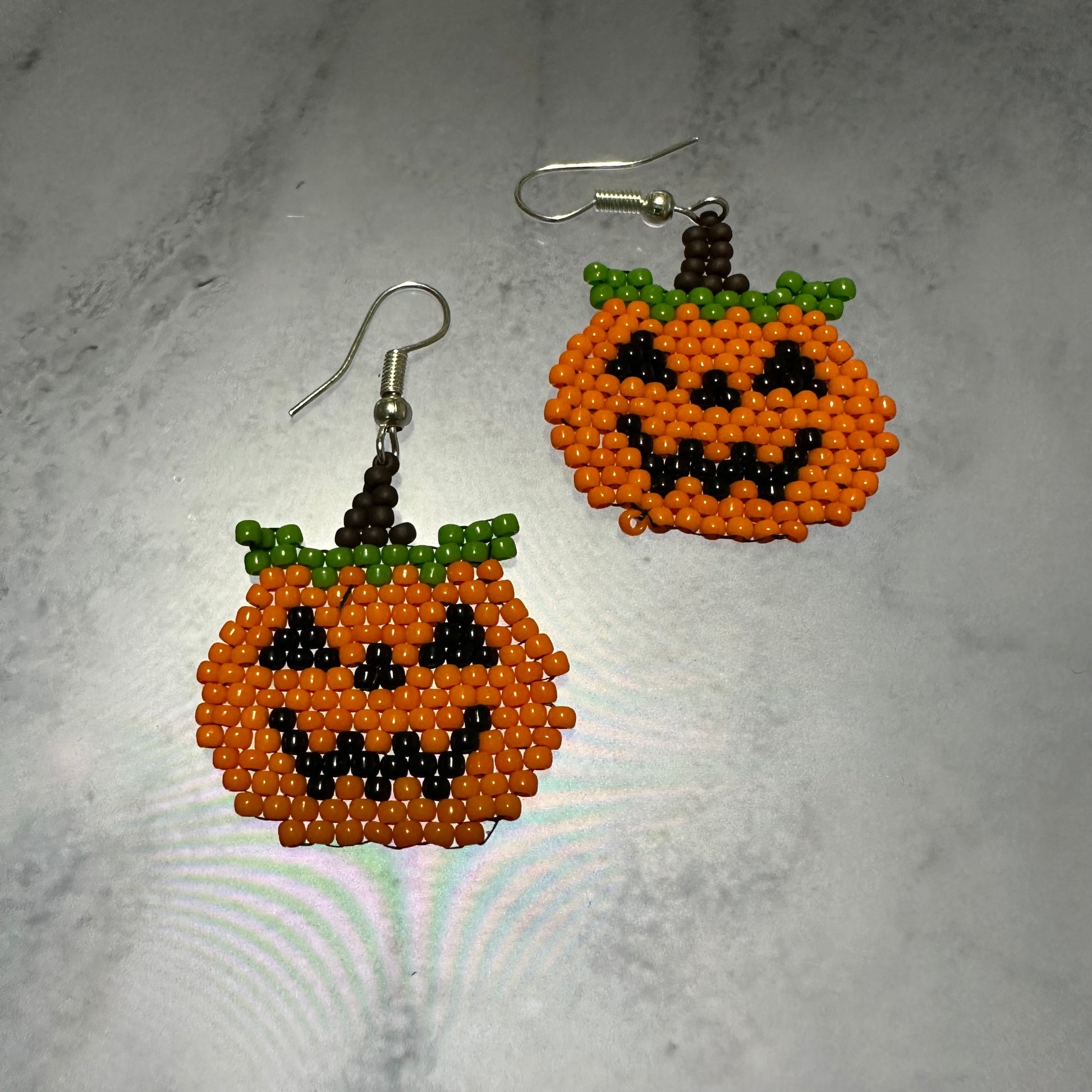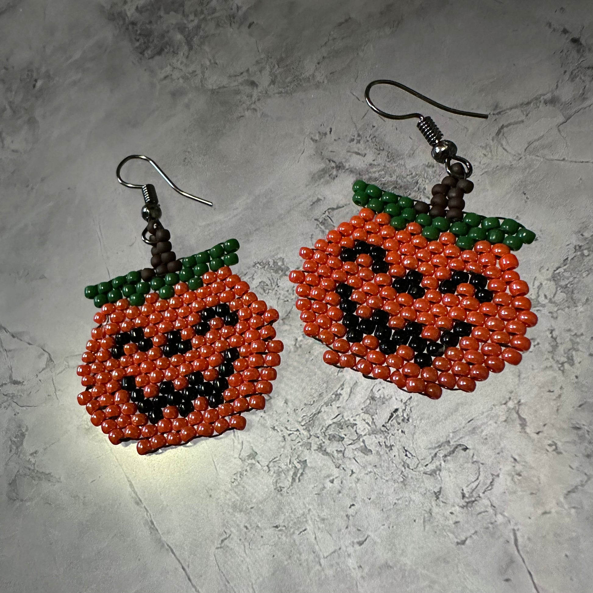 These lovely jack-o-lanterns are about 3cm by 5cm and ready to be your autumnal accessory!