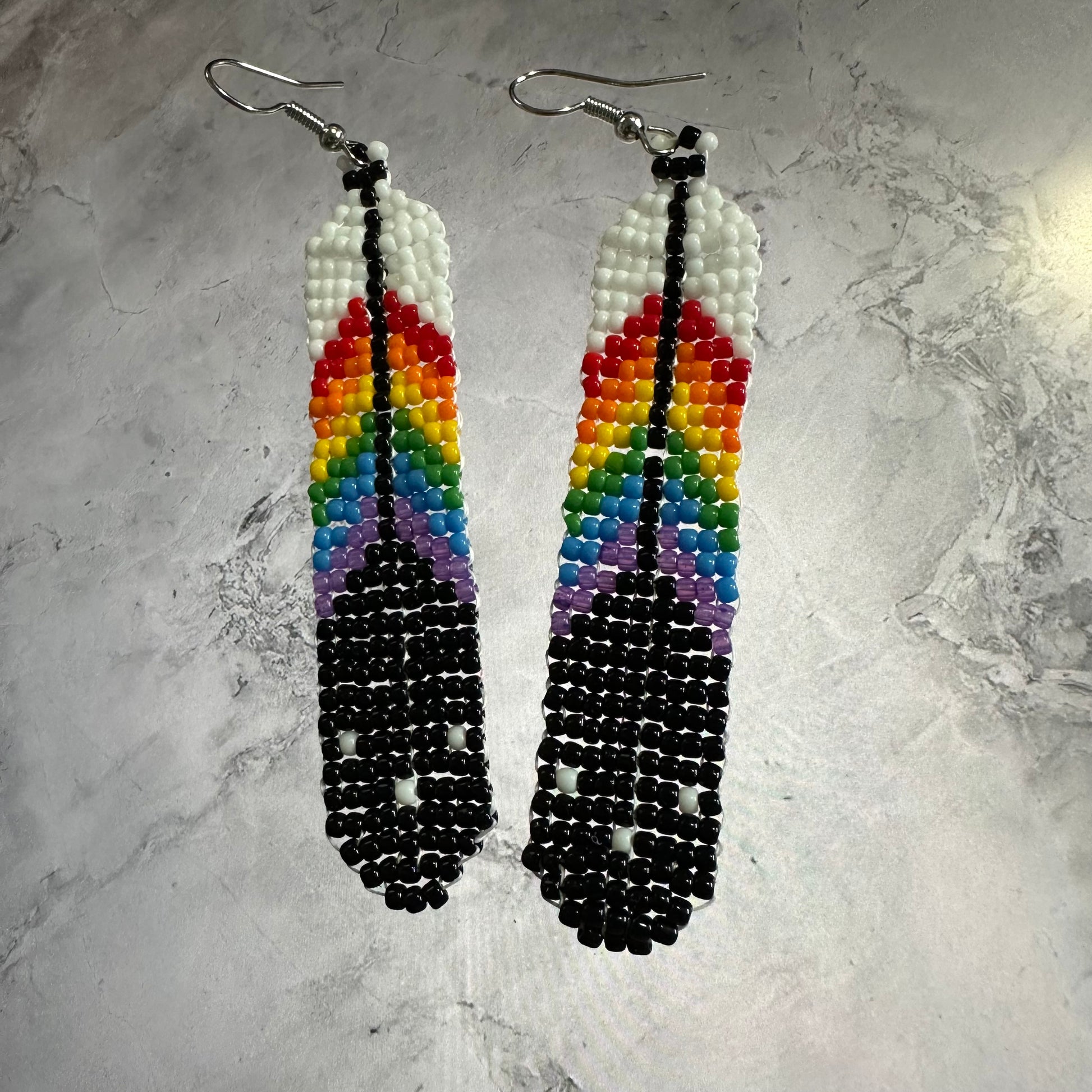 Add a touch of pride and joy to your look with our rainbow beaded feather earrings. Measuring at about 3 inches, these earrings will elevate any outfit with these unique and eye-catching earrings.